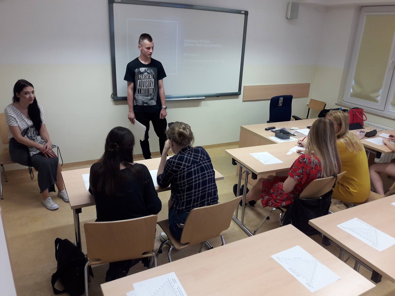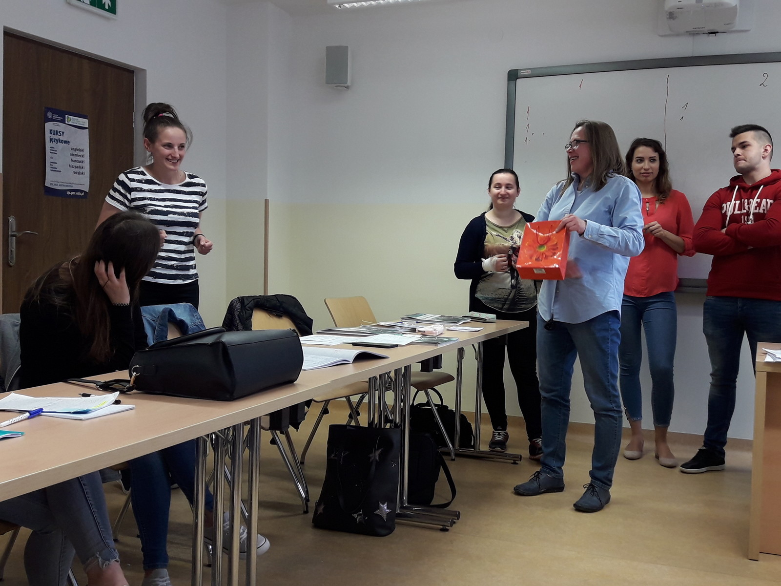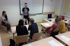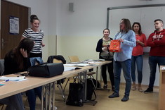 Do głównego wyzwania należało rozwiązywanie zadań przygotowanych przez studentów. Poziom zaangażowania i plusy współzawodnictwa można dostrzec na zdjęciach. W ten sposób powtórzona została gramatyka i zagadnienia leksykalne z całego semestru. Wzrosła także pewność, że studenci nie zgubią się już w na terenie kampusu.