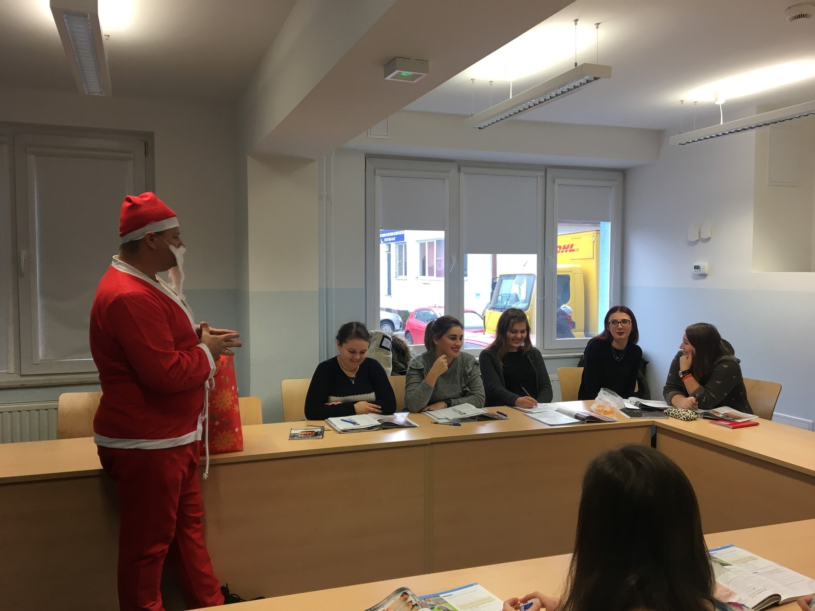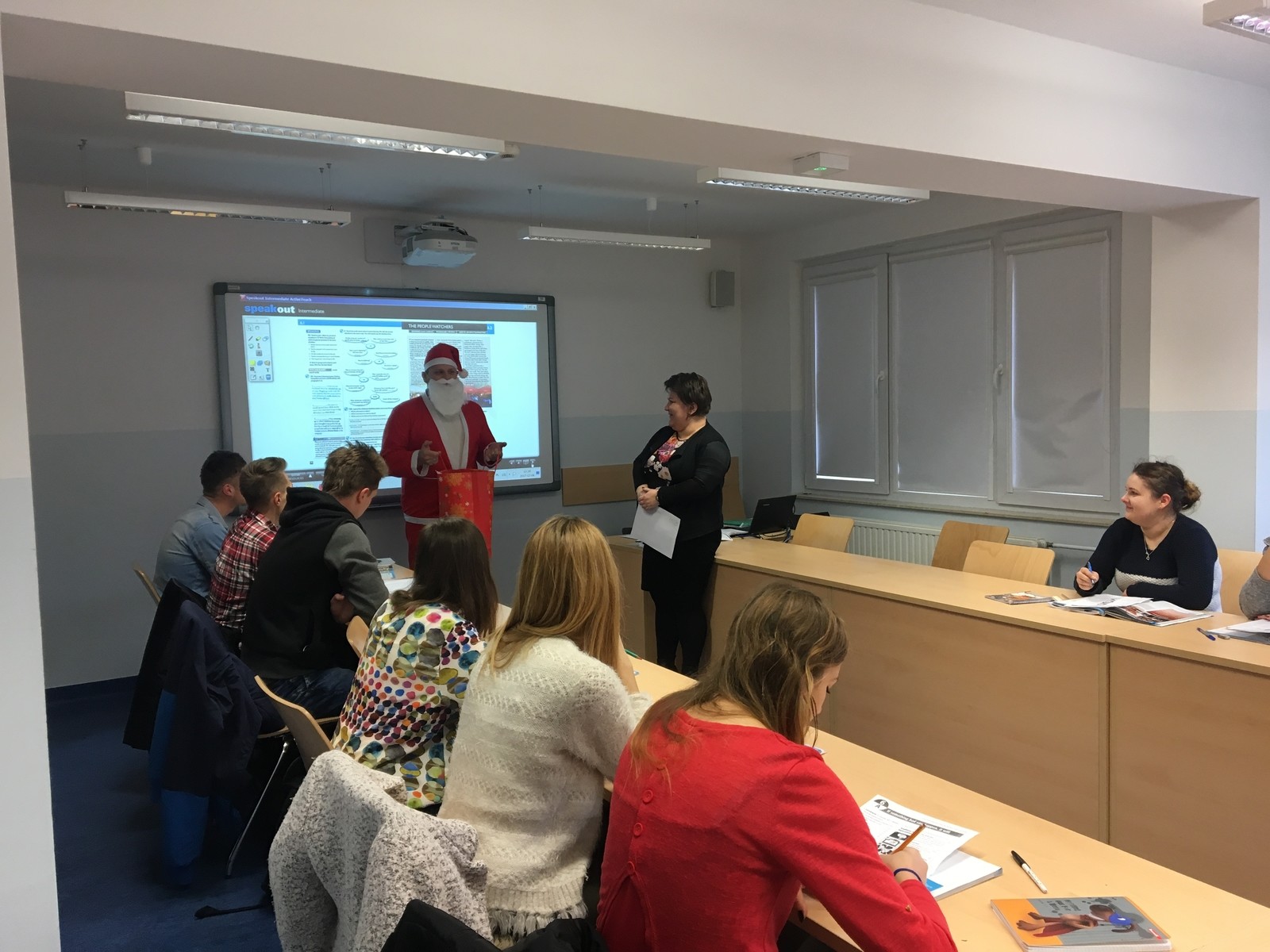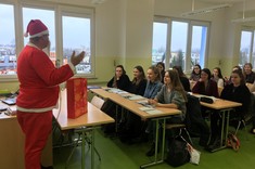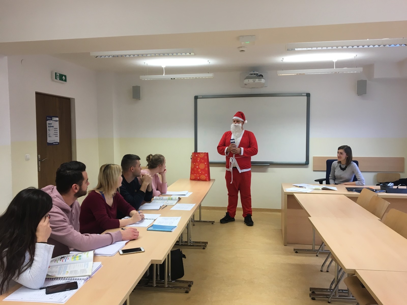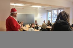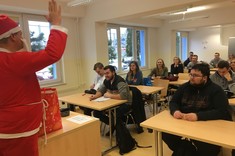 Dzisiaj w SJO zawitał niespodziewanie Święty Mikołaj. Przybył ze słodką niespodzianką i odwiedził wiele grup odbywających lektoraty w naszym budynku. Rozmawiał ze studentami, zadawał mnóstwo pytań i zachęcał do solidnej nauki języków obcych. Co najważniejsze, mówił wyłącznie po angielsku. Wzbudził ogromne zainteresowanie i radość, i z pewnością uprzyjemnił nasze zajęcia. Zapewnił, że przybył tu w nagrodę za doskonałe sprawowanie studentów PRz, ich zaangażowanie w lektoraty, oraz podkreślał, że świetna znajomość języków obcych jest ich atutem.