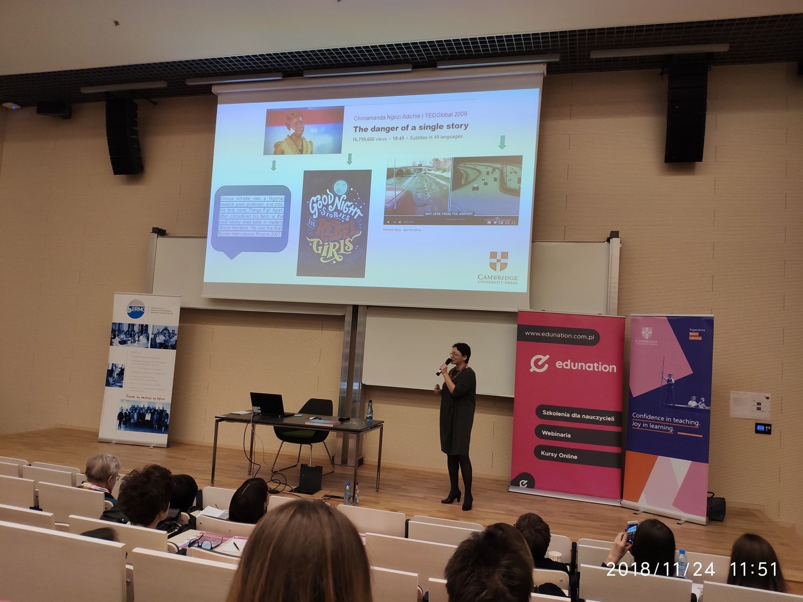 Dnia 24 listopada 2018 firma szkoleniowa Edunation pod honorowym patronatem Stowarzyszenia Akademickich Ośrodków Nauczania Języków Obcych SERMO zorganizowała kolejne szkolenie z cyklu Edukonferencja Uczę Dorosłych. W konferencji zorganizowanej w Centrum Zarządzania Innowacjami i Transferem Technologii Politechniki Warszawskiej miały przyjemność uczestniczyć mgr Magdalena Kawa-Ledniowska, mgr Karolina Potocka oraz dr Kamila Kosturek-Dybaś. Edukonferencja skierowana była do wszystkich nauczycieli języków obcych, którzy na co dzień pracują z uczniami dorosłymi bądź klientami biznesowymi.