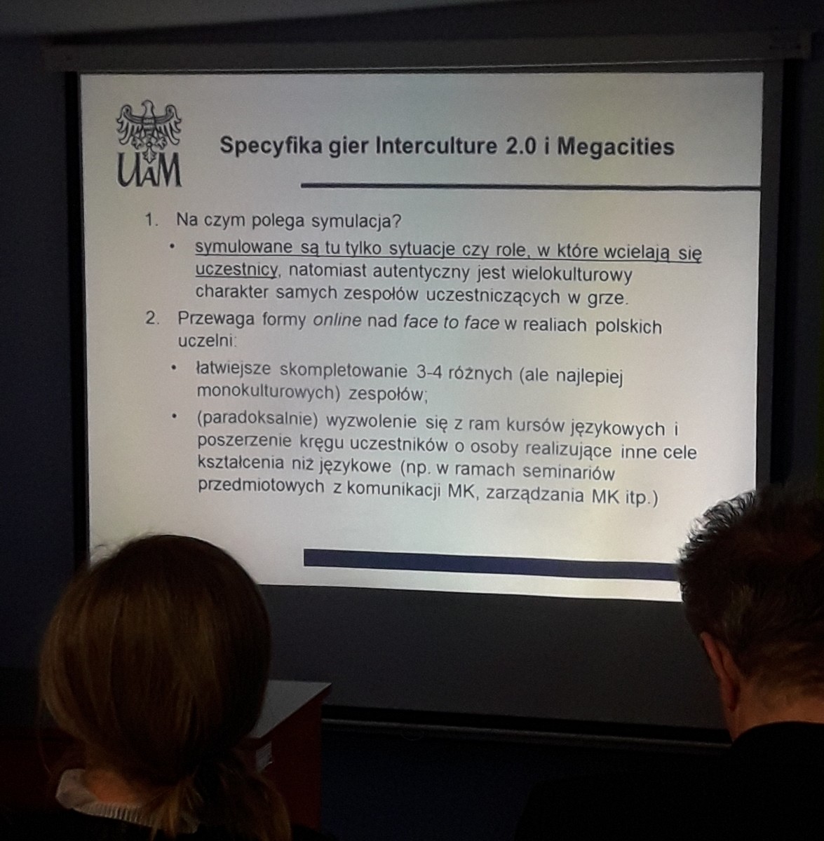 Wykłady odbywały się naprzemiennie z warsztatami, co urozmaicało bardzo obszerny harmonogram. Zwrócono nam szczególną uwagę na rosnącą wagę umiejętności miękkich, potrzebę krytycznego myślenia i rozwiązywania problemów, zarówno na etapie przyswajania wiadomości i pobudzania motywacji do nauki, jak również po zakończeniu studiów. Wówczas studenci wchodząc na rynek pracy odbywają rozmowy kwalifikacyjne, coraz częściej w języku obcym. Warsztaty poruszały również tematykę autonomicznego podejścia do nauczania i uczenia się studentów poprzez Webquests (współpraca z telefonami podczas rozwiązywania kreatywnych zadań w języku obcym), Fieldwork (praca w terenie), Telecolaboartion (telewspółpraca ze studentami z innych uczelni państwowych bądź zagranicznych - tworzenie wspólnych projektów). Utwierdziłam się w przekonaniu, że moje własne projekty, przeprowadzanie zajęć w formie gry terenowej, quizy i nawet częściowa autonomia studentów w procesie kształcenia podnosi motywację lub ją reaktywuje. Zainspirował mnie wykład mgr Grażyny Dudy oraz dr. hab. prof. UAM Macieja Mackiewicza o telewspółpracy na przykładzie konkretnych uczelni oraz o zastosowaniu gier symulacyjncyh online w procesie nauczania.